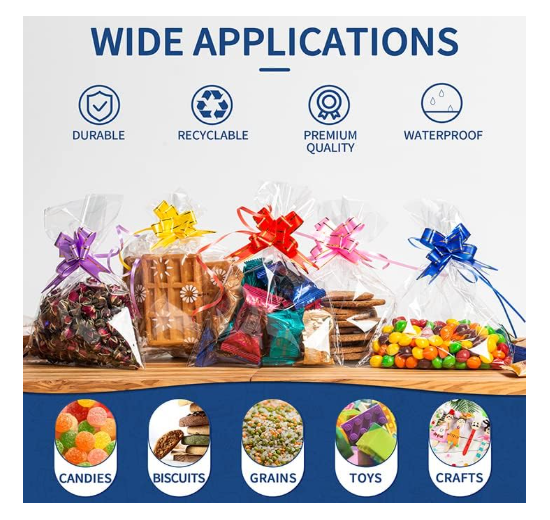 Made from high-quality, transparent cellophane material, these bags are perfect for showcasing your products while keeping them safe and secure. The bags are easy to use, with a pull bow ribbon that adds a touch of elegance and style to your packaging.